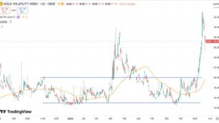 株式投資「金」調整か 10日間ヴィパッサナー瞑想合宿に行っている間に、「金」が暴騰していた。(青い縦線の中)GLDMの日足50日移動平均線からかなり乖離している。これはしばらく調整がありそうだ。GVZ(金ボラティリティーインデックス)を観るとこちらもすごい上昇だ... 2025.10.24株式投資