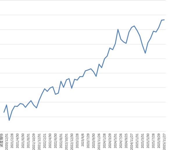 今月は前月比で、プラス4.6万円だった。S&P500が弱かったので若干マイナスになるかなと思たが、円安のおかげだと思う。10月末が153円だったのに対して11月末は156円だった。