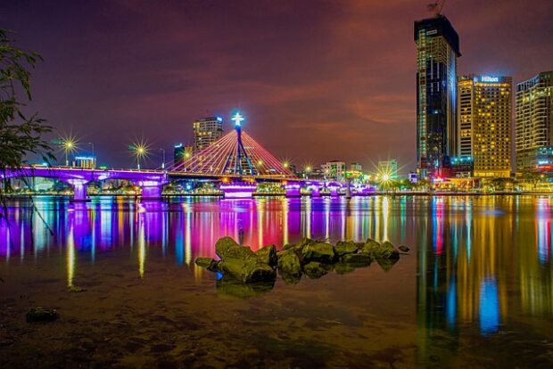 ダナンはベトナム中部にあり、ラオス経由が最も現実的です。