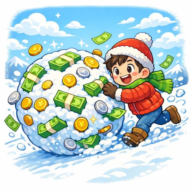 これは、増えた分がまた次のお金を生んで、雪だるまみたいにどんどん大きくなっていく仕組み。
