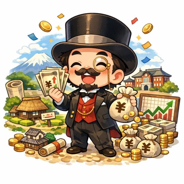 - 鉄道株への投資: 恩師の教えに従い、政府が注力していた日本鉄道株などを購入しました。これが後の政府買収により2.5倍の価格になりました。