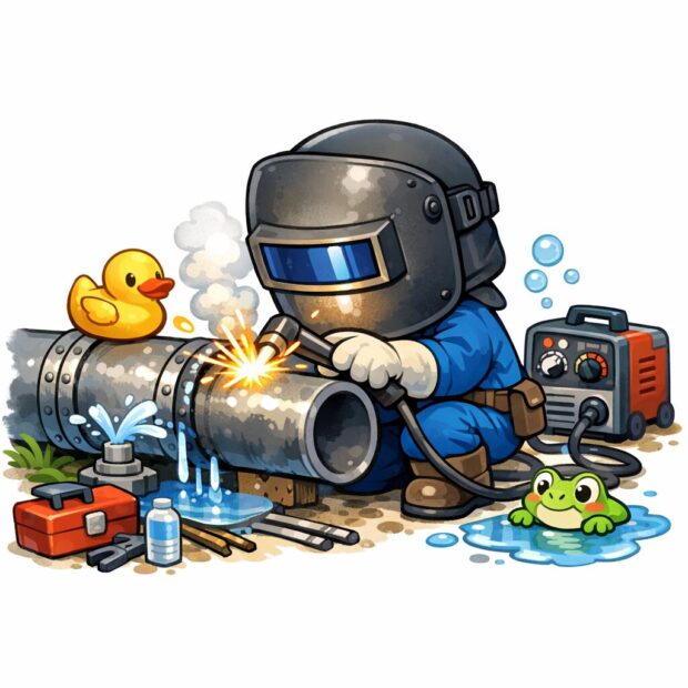 - 溶接の活用: 古くなった鉄管やステンレス管の溶接補修・配管作業が頻繁に発生します。
